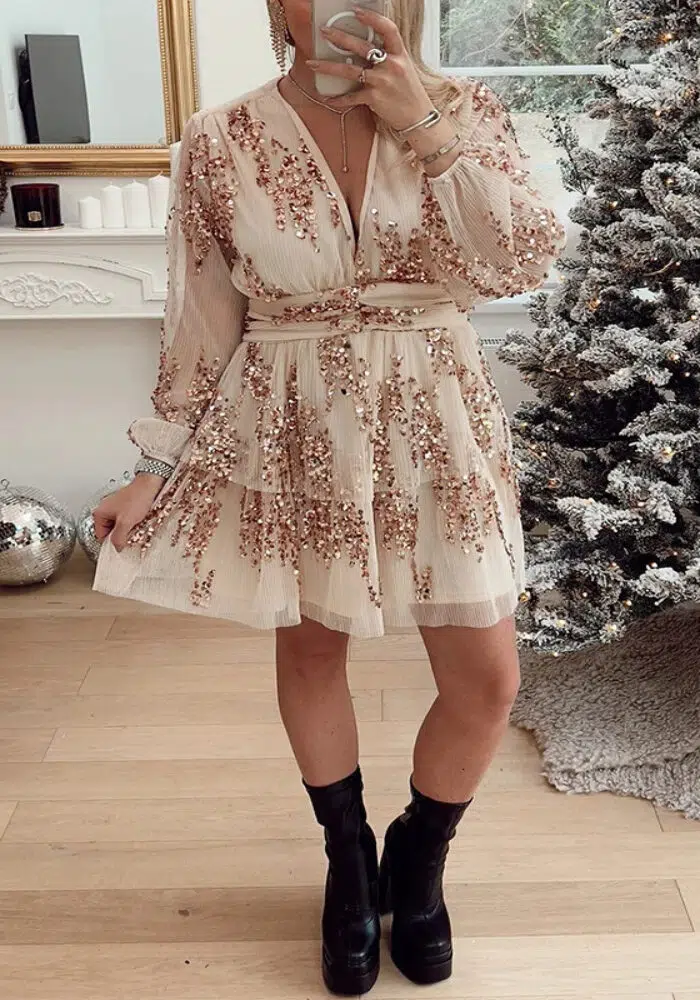Pour une soirée glamour, associez votre robe brillante à des chaussures à talons aiguilles et une pochette élégante. Optez pour des bretelles fines ou un col plongeant pour ajouter une touche d’audace. Ajoutez des boucles d’oreilles pendantes en diamant ou en strass pour un éclat supplémentaire. Nos robes avec des manches en tulle et des paillettes sont parfaites pour ces occasions. Vous allez adorer l’attention que vous recevrez en entrant dans la pièce, scintillante et confiante !